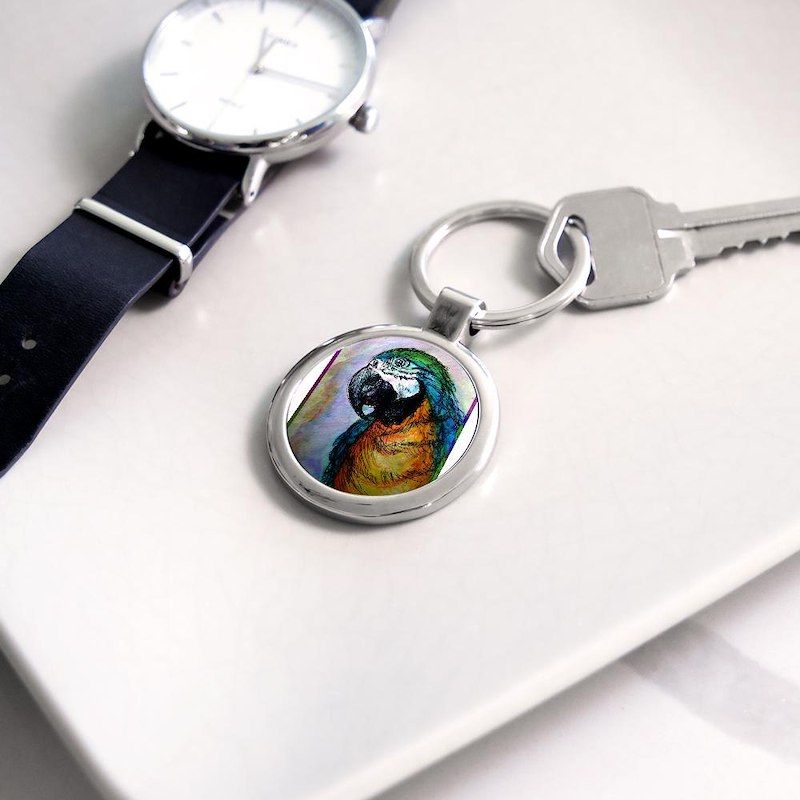 Blue/gold macaw! Bird art! Circle Keychain