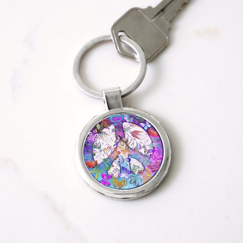 Harvest Moons Butterfly Peace Sign Circle Keychain